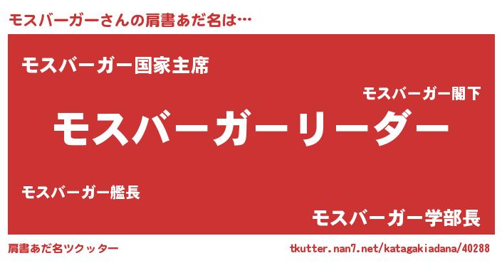 | 意味不明あだ名 | 『とにかく怪しいモスバーガー』 |