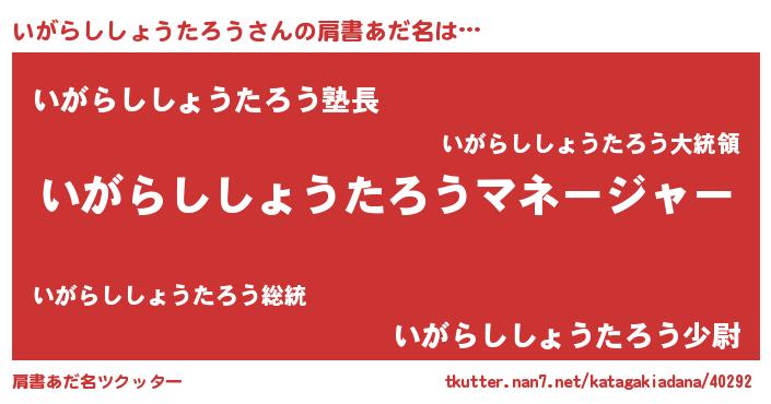 | 男性向けラノベタイトル風あだ名 | 『いがらししょうたろうに滅ぼされるだけの簡単なお仕事です』 |