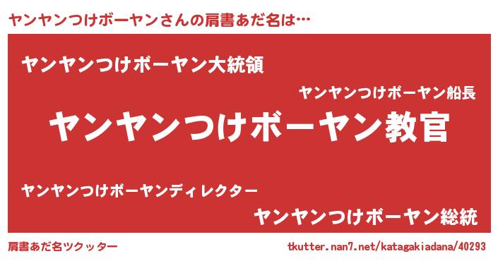 | 意味不明あだ名 | 『住所不定無職ヤンヤンつけボーヤン(56歳)』 |
