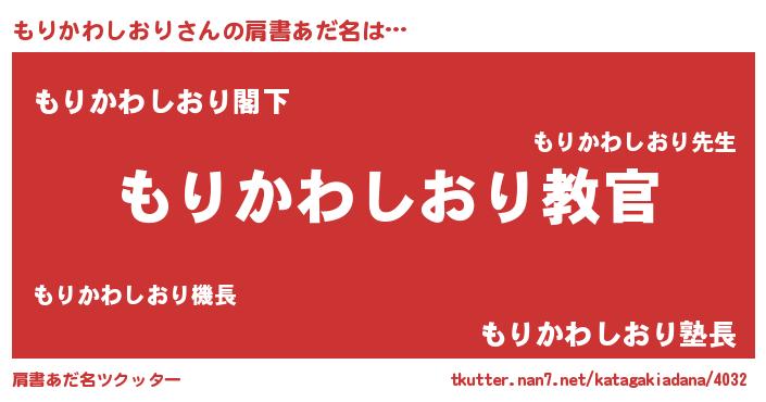 | ヘコむあだ名 | 『もりお』『もりかわしおり(笑)』 |