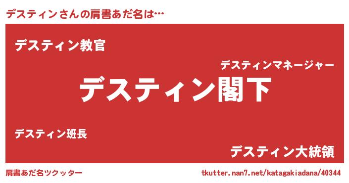| 男性向けラノベタイトル風あだ名 | 『Re:デスティンから始める異世界生活』 |