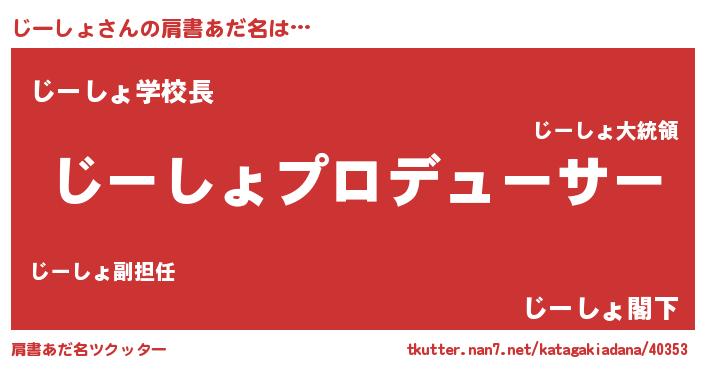 | 欧米人風あだ名 | 『アンジェラ・じーしょ』 |