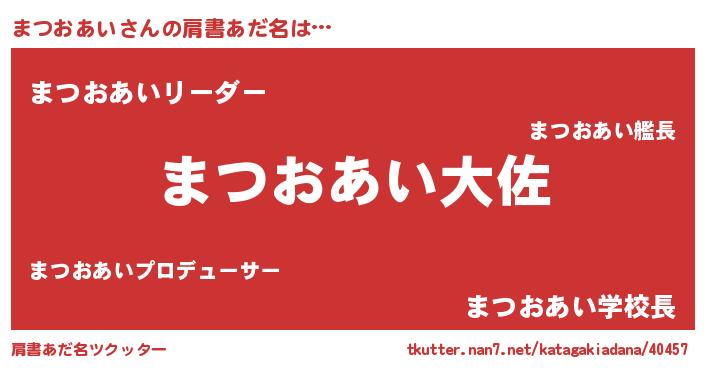 | 男性向けラノベタイトル風あだ名 | 『まつおあい~年齢イコール彼女いない歴の魔法使い~』 |