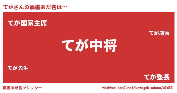 | ポケモン風あだ名 | 『テガキング』『テガダネ』『ヒテガ』 |