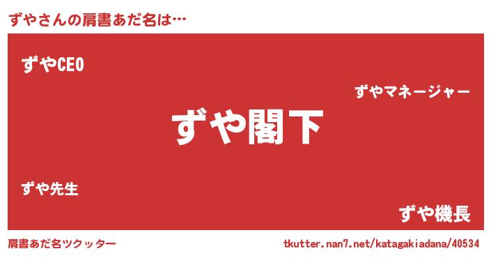 | 男性向けラノベタイトル風あだ名 | 『魔法科高校のずや』『緋弾のズヤ』 |