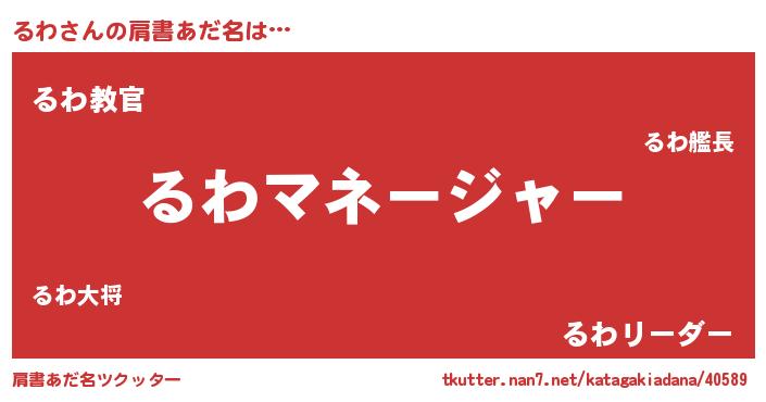 | 男性向けラノベタイトル風あだ名 | 『るわに滅ぼされるだけの簡単なお仕事です』 |