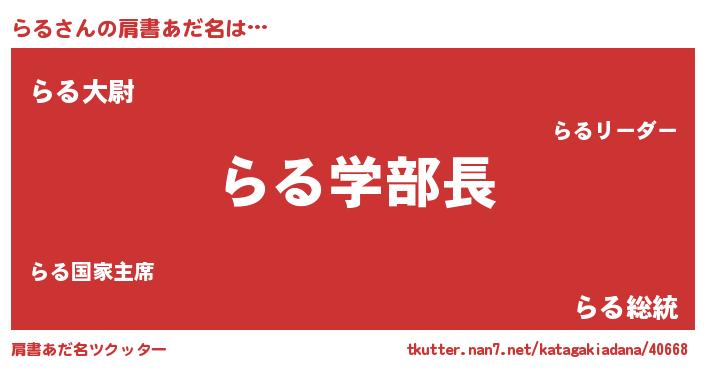 | ピコ太郎風あだ名 | 『ララ太郎』『ラル四郎』『ピラ史郎』 |
