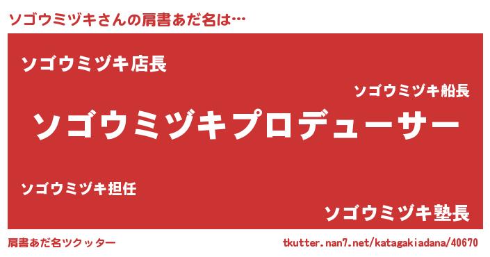 | 男性向けラノベタイトル風あだ名 | 『ソゴウミヅキに滅ぼされるだけの簡単なお仕事です』 |
