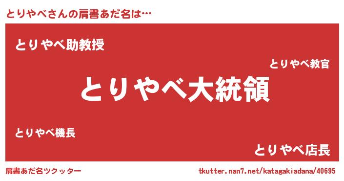 | 男性向けラノベタイトル風あだ名 | 『やはりとりやべの青春ラブコメはまちがっている 』 |