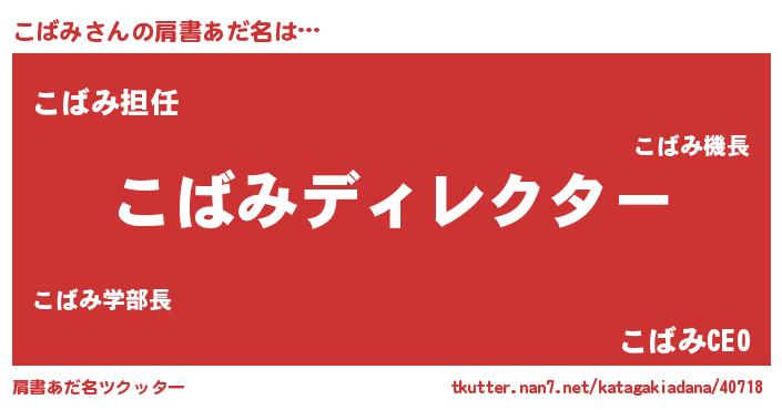 | ヘコむあだ名 | 『こばみ(爆)』『こばもー』『こばを』 |