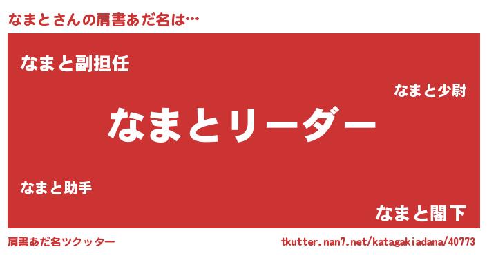 | 意味不明あだ名 | 『とにかく怪しいなまと』『自称なまと』 |
