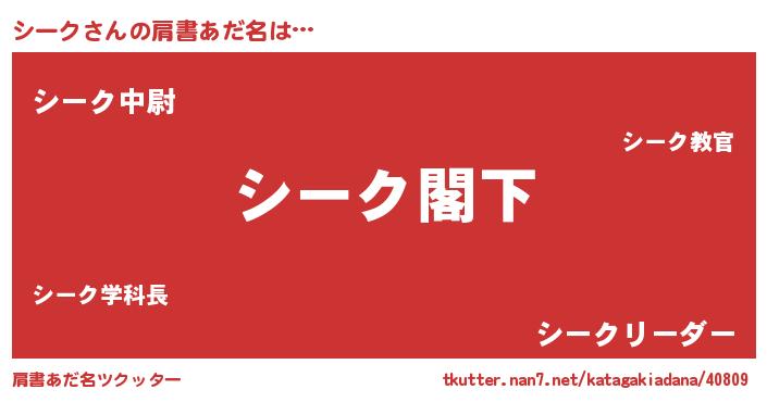 | 女子向けラノベタイトル風あだ名 | 『闇のシーク』『シークは平凡を望む』 |