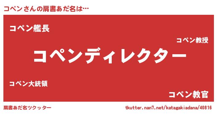 | 意味不明あだ名 | 『住所不定無職コペン(59歳)』 |