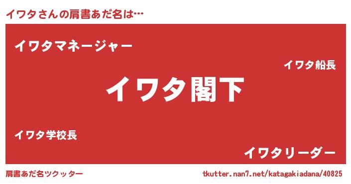 | 男性向けラノベタイトル風あだ名 | 『Re:イワタから始める異世界生活』 |