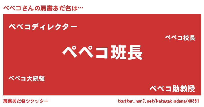 | 意味不明あだ名 | 『とにかく怪しいペペコ』『自称ペペコ』 |