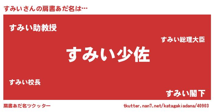 | ヒーロー風カッコイイあだ名 | 『慈愛の使者すみい』『ネオスミイ』 |
