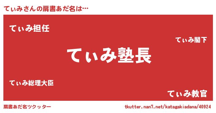 | ポケモン風あだ名 | 『ヒティミ』『ゼニティ』『テーィイ』 |