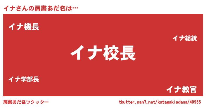 | 男性向けラノベタイトル風あだ名 | 『イナという概念が存在しない退屈な世界 』 |