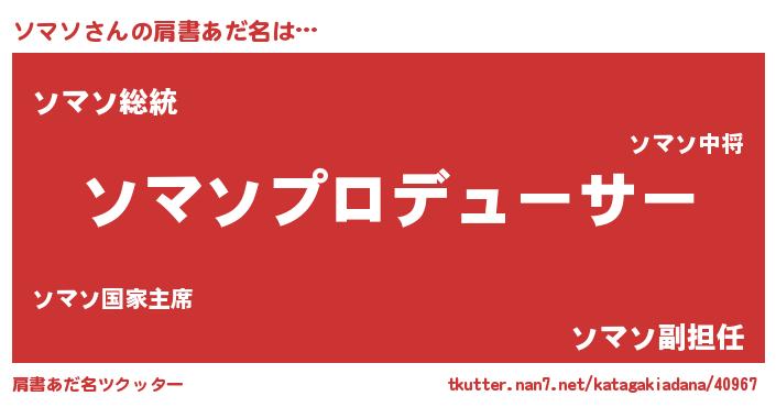 | 意味不明あだ名 | 『自称ソマソ』『永久保存ソマソ』 |