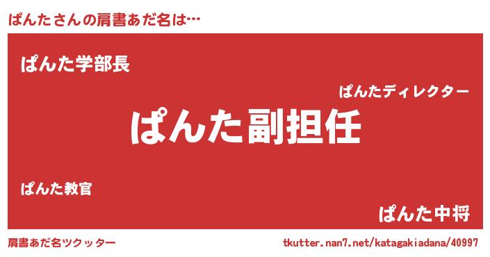 | ヘコむあだ名 | 『ぱんた(震え声)』『ぱんっちょ』 |