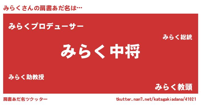 | ヘコむあだ名 | 『みらく(震え声)』『みらぷりん』 |