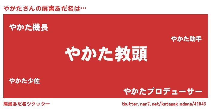 | 意味不明あだ名 | 『永久保存やかた』『エリンギ科やかた属』 |