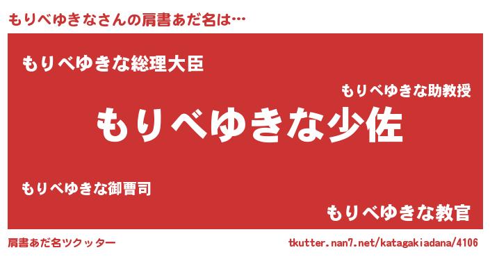 | 男性向けラノベタイトル風あだ名 | 『もりべゆきな~年齢イコール彼女いない歴の魔法使い~』 |