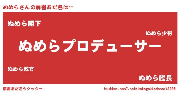 | 男性向けラノベタイトル風あだ名 | 『はたらくぬめらさま!』 |