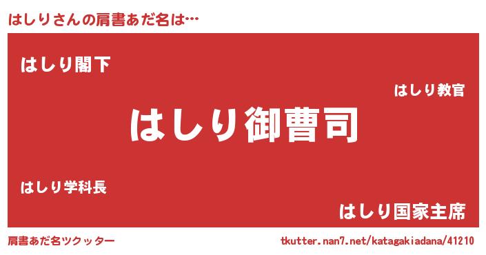 | ヒーロー風カッコイイあだ名 | 『スーパーハシリ』『超時空戦士ハシリ』 |