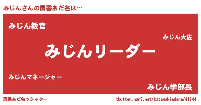 | ヘコむあだ名 | 『みじぷりん』『みじん(苦笑)』 |