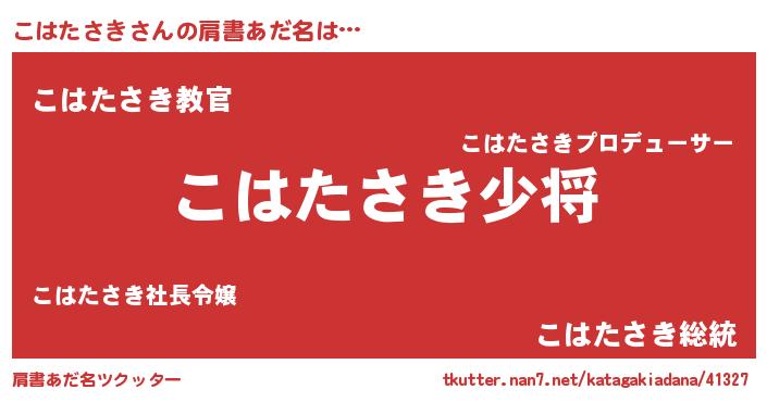 | 男性向けラノベタイトル風あだ名 | 『こはたさき~年齢イコール彼女いない歴の魔法使い~』 |