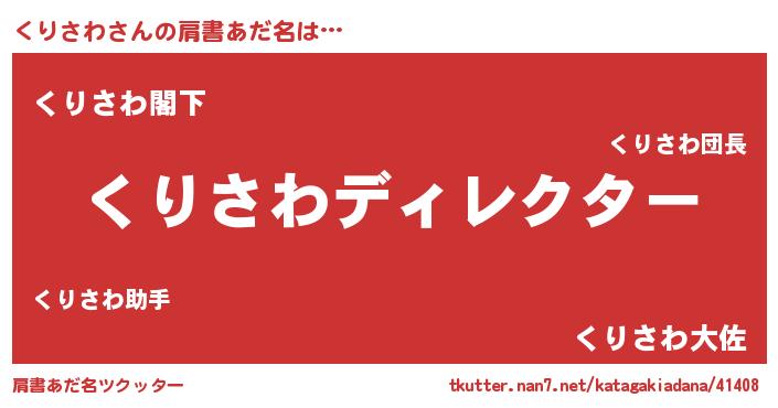 | 男性向けラノベタイトル風あだ名 | 『くりさわに滅ぼされるだけの簡単なお仕事です』 |