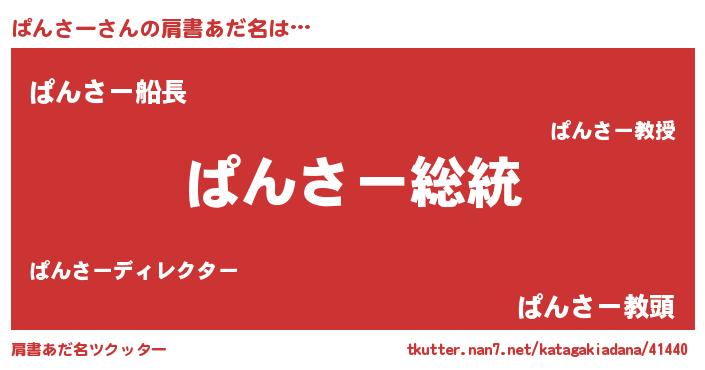 | 男性向けラノベタイトル風あだ名 | 『Re:ぱんさーから始める異世界生活』 |