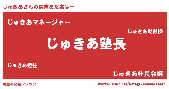 | 胡散臭い通販商品みたいなあだ名 | 『信頼と実績のペンダント…その名も「じゅきあ」』 |