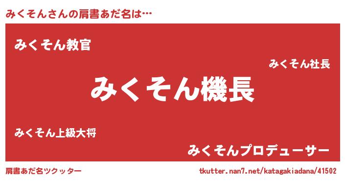 | 意味不明あだ名 | 『住所不定無職みくそん(93歳)』 |