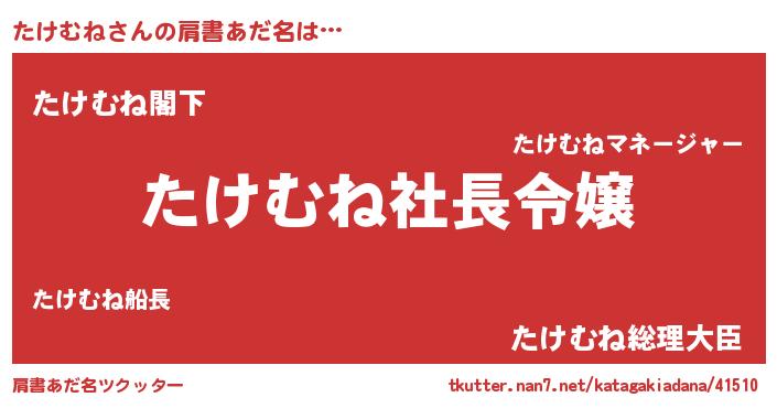 | 胡散臭い通販商品みたいなあだ名 | 『必ず成功する霊験あらたかなお札…その名も「たけむね」』 |