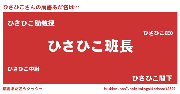| 女子向けラノベタイトル風あだ名 | 『ひさひこは平凡を望む』 |