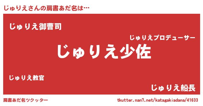 | 男性向けラノベタイトル風あだ名 | 『転生したらじゅりえだった件』 |
