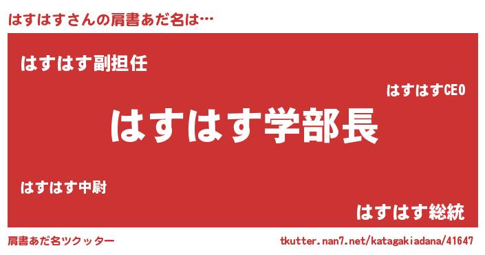 | 女子向けラノベタイトル風あだ名 | 『はすはす恋絵巻』『闇のはすはす』 |