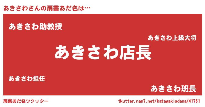 | 欧米人風あだ名 | 『マイケルあきさわ』『ダニエルあきさわ』 |