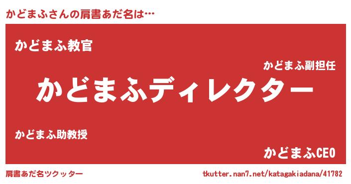 | 恥ずかしいあだ名 | 『プリティーかどまふ』『かどちん』 |