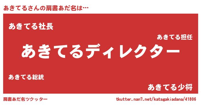 | 男性向けラノベタイトル風あだ名 | 『はたらくあきてるさま!』 |