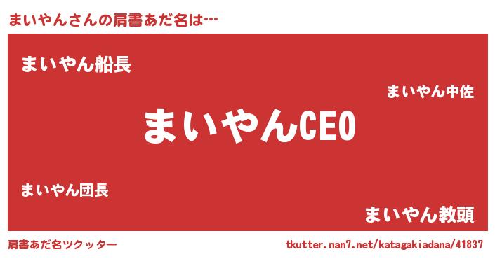 | 意味不明あだ名 | 『ペロリンまいやん』『永久保存まいやん』 |