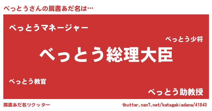 | 意味不明あだ名 | 『べっとうフォーエバー』 |