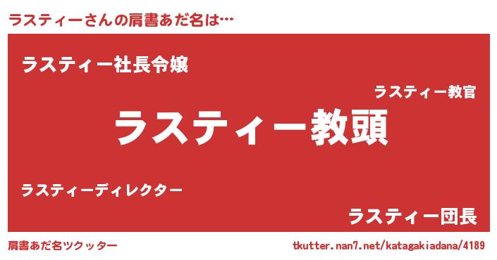 | 男性向けラノベタイトル風あだ名 | 『ラスティーという概念が存在しない退屈な世界 』 |