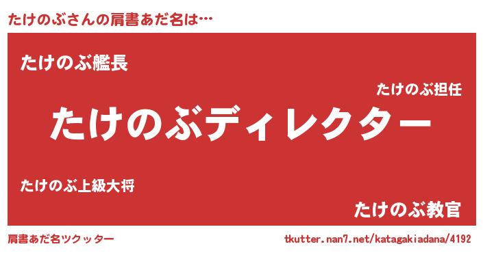 | ヒーロー風カッコイイあだ名 | 『仮面タケダー』『ネオタケノブ』 |