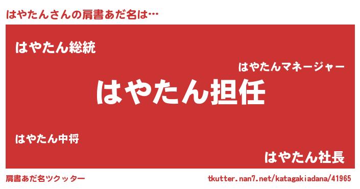 | 女子向けラノベタイトル風あだ名 | 『はやたんの契約王妃』『闇のはやたん』 |