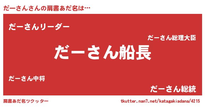| 男性向けラノベタイトル風あだ名 | 『緋弾のダーサン』 |
