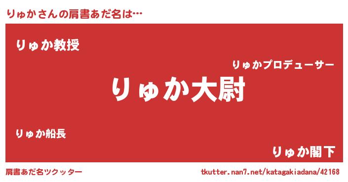 | ヒーロー風カッコイイあだ名 | 『慈愛の使者りゅか』『最強戦士リュカ』 |