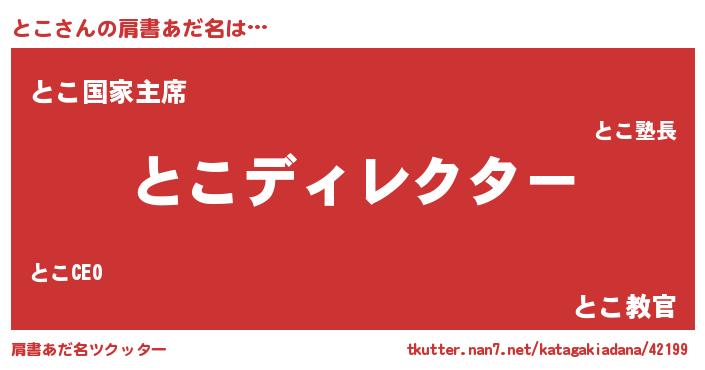 | 男性向けラノベタイトル風あだ名 | 『とこに滅ぼされるだけの簡単なお仕事です』 |